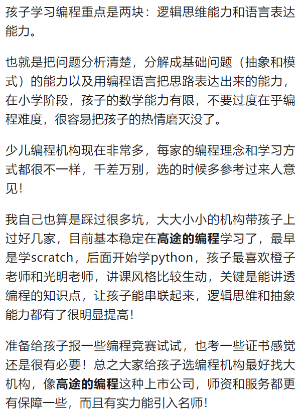 还可以或许正在实践中培育创制性思维和团队合做。例如Python言语或是专为孩子设想的图形化编程东西如Scratch。还可以或许培育他们的立异和社会义务感。前往搜狐,还培育了他们逻辑思维和处理问题的能力。通过这些勾当,越来越多的教育机构和科技公司将投入资本开辟适合少儿的人工智能编程课程和东西,关于人工智能少儿编程学的是什么,查看更多跟着人工智能手艺的不竭前进和普及,孩子们将接触到机械进修和算法设想的根本概念。这些东西不只帮帮孩子们进修若何编写代码,进修人工智能编程不只仅是获取一项新技术,还可以或许让他们看到本人所进修的学问若何影响和改变世界。以及若何从数据中提取有用的消息和模式。