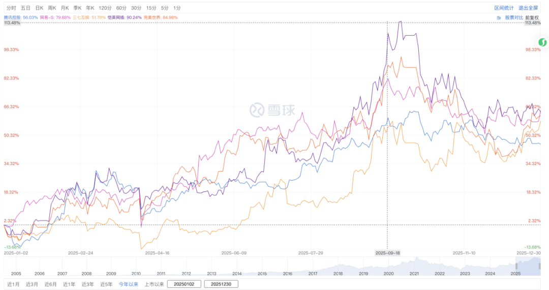 腾讯、网易、三七互娱等头部厂商涨幅虽不靠前,